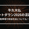 最終更新日:2025年11月16日 今年も残りわずかとなり、カウントダウンの過ごし方を考えている方も多いのではないでしょうか! 牛久大仏カウントダウンイベントは、例年大人気となっていて、2026年もかなりの混雑が見込まれます。 また、カウントダウン明けに公共交通機関がまだ動いていないことを想定し、車での移動を検討されている方もいらっしゃるのではないでしょうか。 そこで今回は、牛久大仏カウントダウン2026の駐車場情報や、混雑状況、日程や参加方法まで詳しくご紹介していきます! Contents 牛久大仏カウ ...
