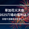 最終更新日:2025年5月31日 夏の風物詩と言えば、花火大会ですよね! 特に草加市民納涼花火大会は、過去に8万人の人出があることで、2025年度も混雑が見込まれます。 混雑の中花火を見るのも夏を感じられますが…少しゆっくり花火が見ることができれば、なお嬉しいですよね。 こちらの記事では、草加市民納涼花火大会2025の穴場スポットや日程、混雑状況をお伝えしていきます! Contents 草加市民納涼花火大会2025の穴場(場所)はどこ? 越谷レイクタウン そうか公園付近 草加市民納涼花火大会2025の日程 ...